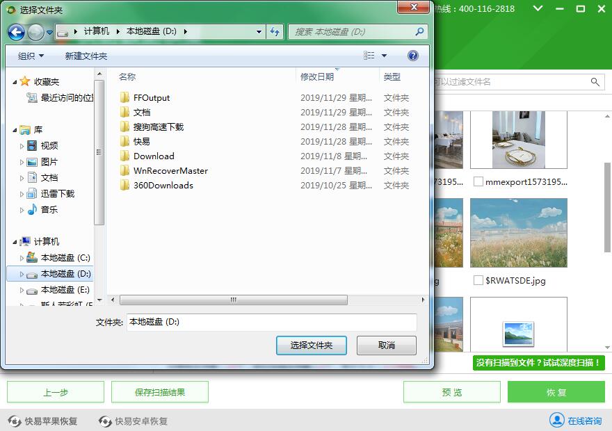 第五、勾选需要恢复的文件,然后点击【恢复】按钮,然后弹出路径选择,这一步可以选择恢复出来文件保存的位置,选择完成就可以把文件恢复到自己指定的文件夹了。