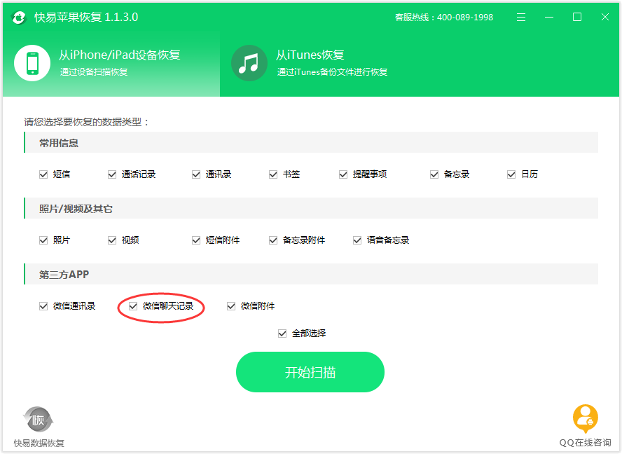 使用苹果恢复软件——快易苹果恢复,几个简单的步骤就可以找回删除的微信聊天记录。