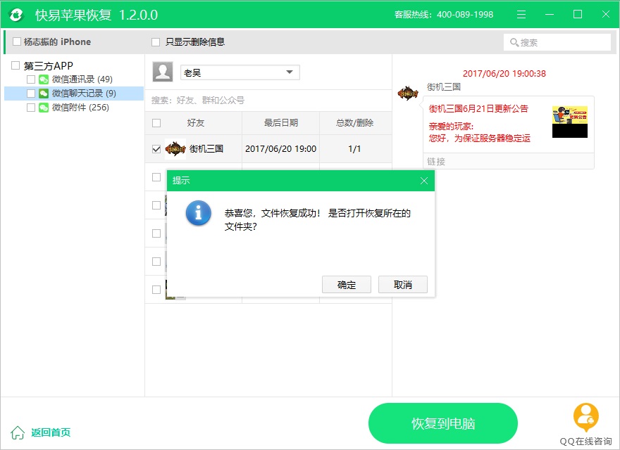这个ios系统微信恢复软件很好用吧?恢复过程仅仅三步,就把咱们丢失的重要聊天记录给恢复回来了。这么好用的软件快收藏一下,说不定什么时候就需要了呢,有需要的伙伴也可以试试哦!
