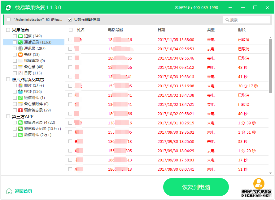 以上就是iPhone手机通话记录恢复的教程,简单的几个步骤就能帮助你恢复数据!即使你是电脑小白也不用担心,软件使用简单,结合以上教程就可以使用啦!