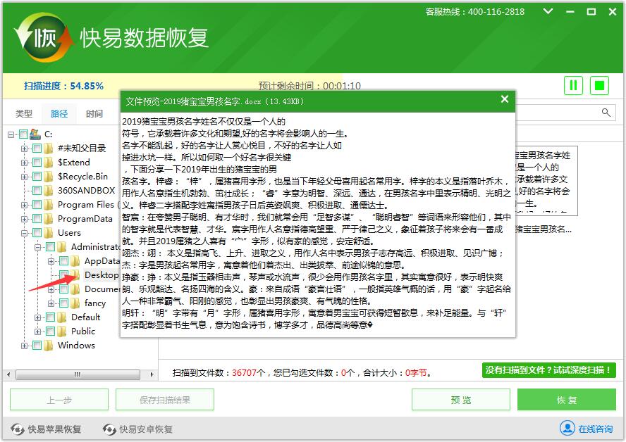 怎么恢复回收站删除的文件?相信大家应该已经学得差不多了吧,非常简单,几乎不需要懂脑筋。建议可以通过预览功能来判断文件的情况。一般来说预览到的文件内容是正常的,那么恢复出来的文件也是正常的。